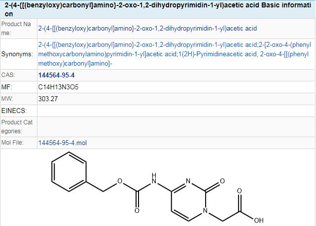 | Product Name: 2-(4-{[(benzyloxy)carbonyl]amino}-2-oxo-1,2-dihydropyrimidin-1-yl)acetic acid | CAS No.: 144564-95-4 |