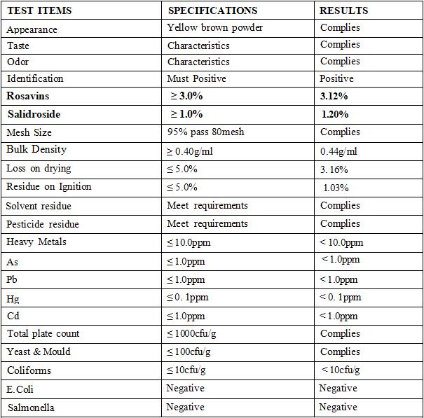 Rosavins 3% salidroside 1% by HPLC
