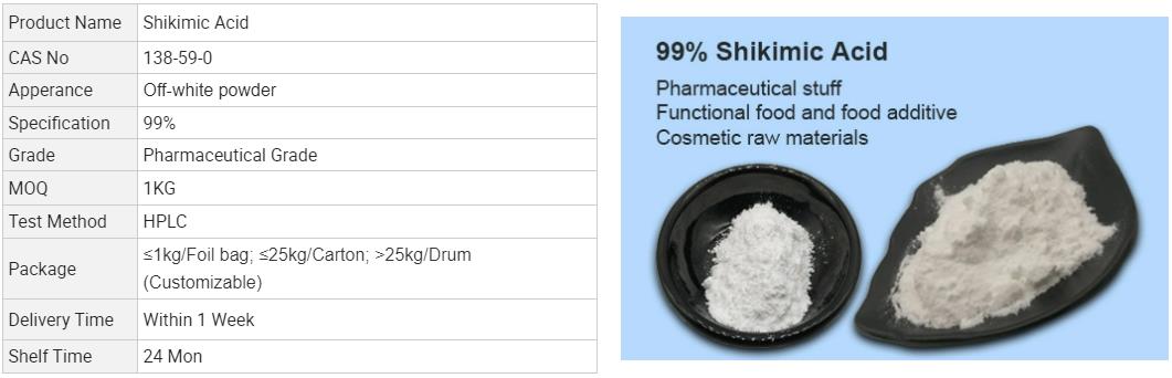 Factory Direct Supply Pharmaceutical Grade Natural Product ≥99% Shikimic Acid(138-59-0)