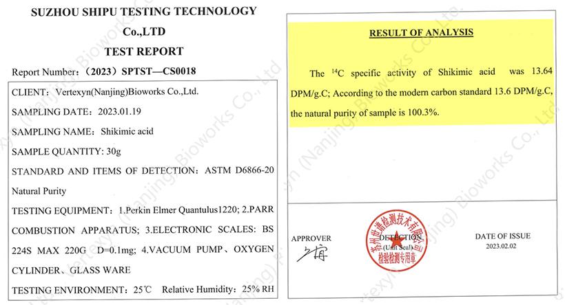 ① Shikimic acid is a competitive product of our company, and free samples can be applied.