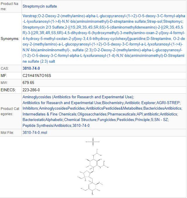 | Product Name: Streptomycin sulfate | CAS No.: 3810-74-0 |