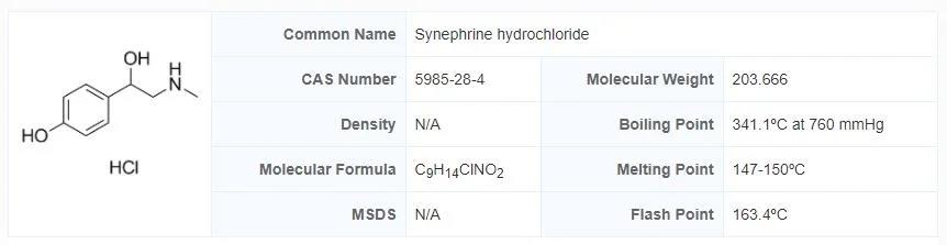| Product Name: Synephrine hydrochloride | CAS No.: 5985-28-4 |