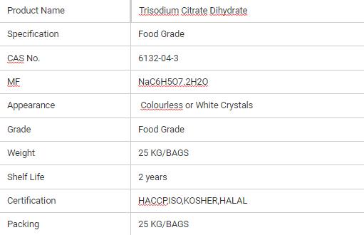 | Product Name: Trisodium citrate dihydrate | CAS No.: 6132-04-3 |