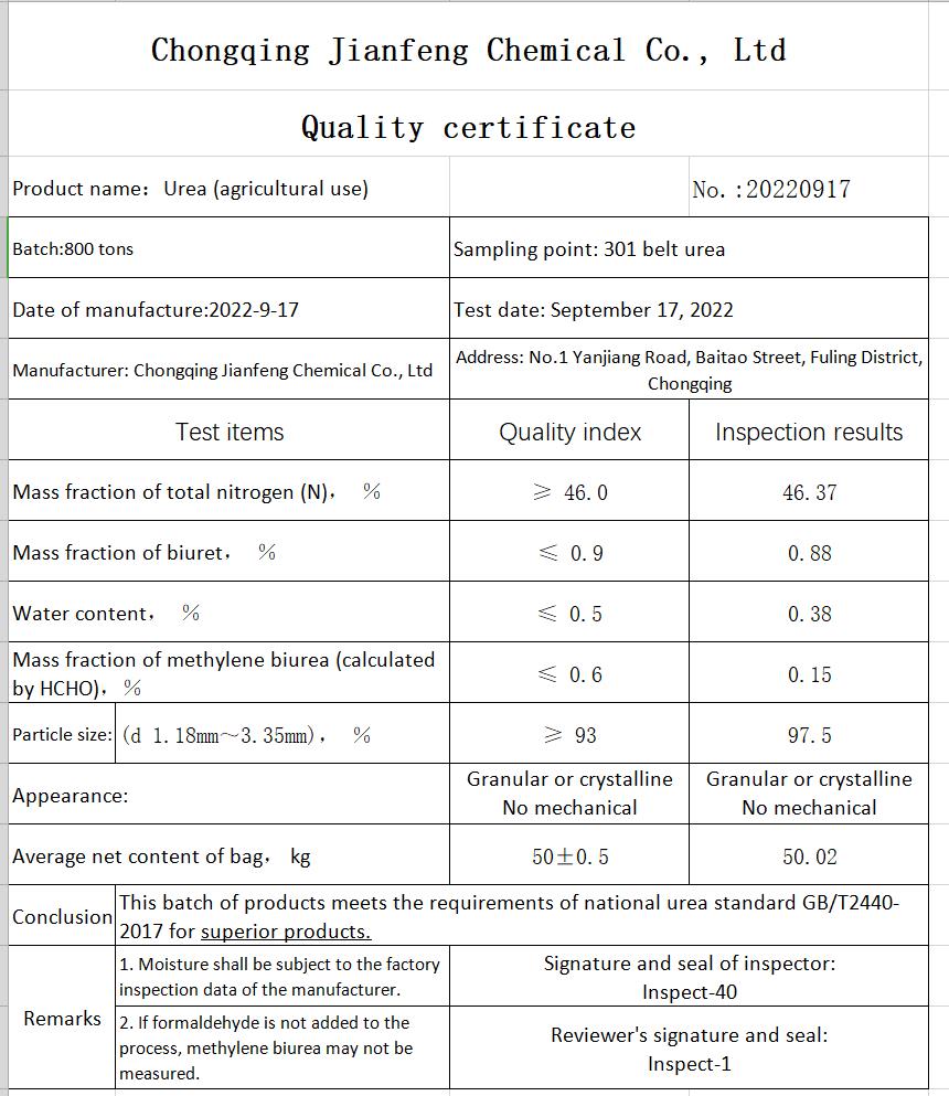Urea, also known as urea or carbamide, is an end product of protein metabolism in humans and mammals, as well as a major organic nitrogen compound excreted by animals. The pure product is white granular or acicular or prismatic crystal, and it is light red or yellow when mixed with iron and other heavy metals. It is tasteless and odorless, soluble in water, ethanol and benzene, and insoluble in ether and chloroform. At 20 ℃, 100 kg of water can dissolve 105 kg of urea, which absorbs heat. The aqueous solution is neutral. The nitrogen content of the pure product is 46.65%, the agricultural urea is 42%~46%, and it contains a small amount of biuret, generally less than 2%, which is generally harmless to crop growth; The specific gravity and unit weight of urea are small, and the weight of fertilizer per cubic meter is 0.65 tons. Urea is an important nitrogen fertilizer with high quality and efficiency. At the end of World War I, Germany began to use urea as fertilizer. Practice has proved that urea has a high nitrogen content and no side components, which shows a good yield increase effect on all crops. Since the 1950s, it has become a key nitrogen fertilizer variety developed by various countries. In the 15 years from 1960 to 1975, the global urea output has increased by 10.5 times, and it has gradually replaced ammonium nitrate since the 1970s, becoming the most widely used nitrogen fertilizer variety in the world. After urea is applied to the soil, a small part of it is absorbed by the plant in the form of amide, and most of it is ammoniated under the action of urease, converted into ammonia, and then absorbed by the plant. The decomposition rate depends on the soil quality, chemobook temperature and water content, generally in 3 to 10 days. Therefore, the fertilizer effect of urea is longer than other nitrogen fertilizers, and the nitrogen loss is less. Urea is an ideal fertilizer for topdressing outside the root, because it does not contain harmful ingredients to crops, is neutral, does not burn the stems and leaves, has strong moisture absorption, and is easy to penetrate into the leaves with water and be quickly absorbed by crops. The concentration of topdressing outside the root is generally 0.5%~2%. In order to improve the effect of urea utilization, in addition to correctly mastering the properties and application conditions of urea, attention should be paid to rational application. Urea is a neutral fertilizer and contains no harmful components. Hydrolysate NH+4 and HCO-3 can be absorbed and utilized by crops. It is applied year after year, and generally has no adverse effect on soil properties. It is applicable to all kinds of crops and soils, and its fertilizer efficiency is similar to that of ammonium sulfate with equal nitrogen content; The effect is better than that of ammonium sulfate when it is used in the "aged" paddy field which lacks active iron and is prone to hydrogen sulfide poisoning. Too much urea or too high biuret content will easily cause ammonia and biuret toxicity to crops; The higher the urease activity of crops, the more sensitive to the toxicity of urea and biuret. Urea can be used as a supplementary feed for anti nestling animals. In industry, urea is the raw material for the synthesis of urea formaldehyde, melamine formaldehyde resin, etc. Medically, it is used to manufacture tetracycline, phenobarbital, caffeine and other drugs. The dye industry uses it to produce vat brown BR, phthalocyanine blue B, etc. Urea is packed with plastic film inside and woven bag outside. It shall be stored in a dry warehouse and shall not be stored and transported together with acids.