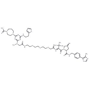 3,6,9-Trioxa-12,15-diazahexadecanamide, 15-[4-(4-acetylhexahydro-1H-1,4-diazepin-1-yl)-6-[[2-(2-thienyl)ethyl]amino]-1,3,5-triazin-2-yl]-N-[(1S)-1-[[(2R,4S)-4-hydroxy-2-[[[[4-(4-methyl-5-thiazolyl)phenyl]methyl]amino]carbonyl]-1-pyrrolidinyl]carbonyl]-2,2-dimethylpropyl]-13-oxo-(2417159-57-8) 1H NMR Atlas of Related Products