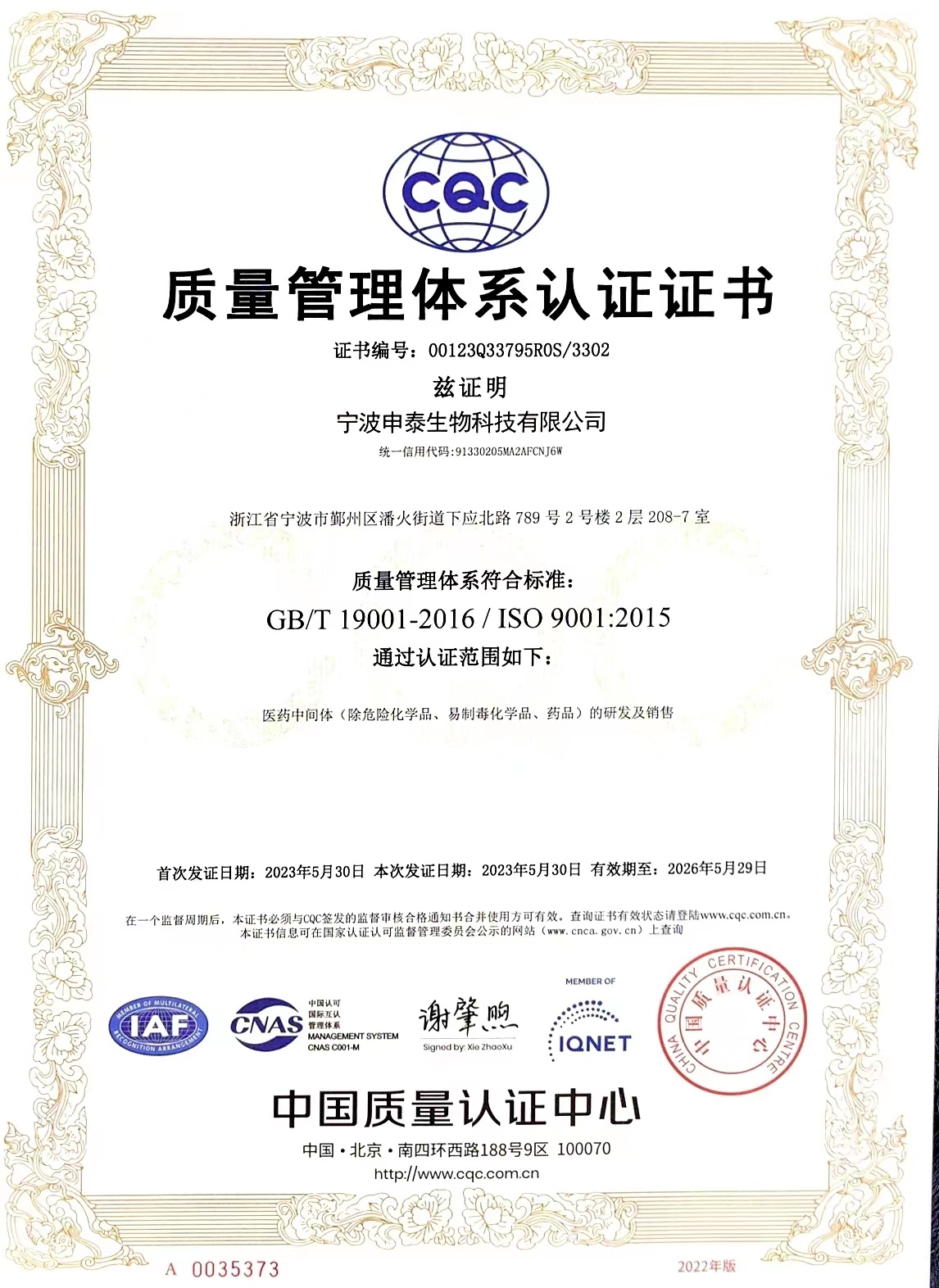 宁波申泰生物科技有限公司(品牌:申亿泰)是一家专注于医药中间体研发、生产和销售为一体的国家级科技型企业,致力于创新药物中间体的工艺研究、开发和仿制药物中间体工艺优化控制成本,为国内外医药市场提供各类药物相关产品和技术解决方案。