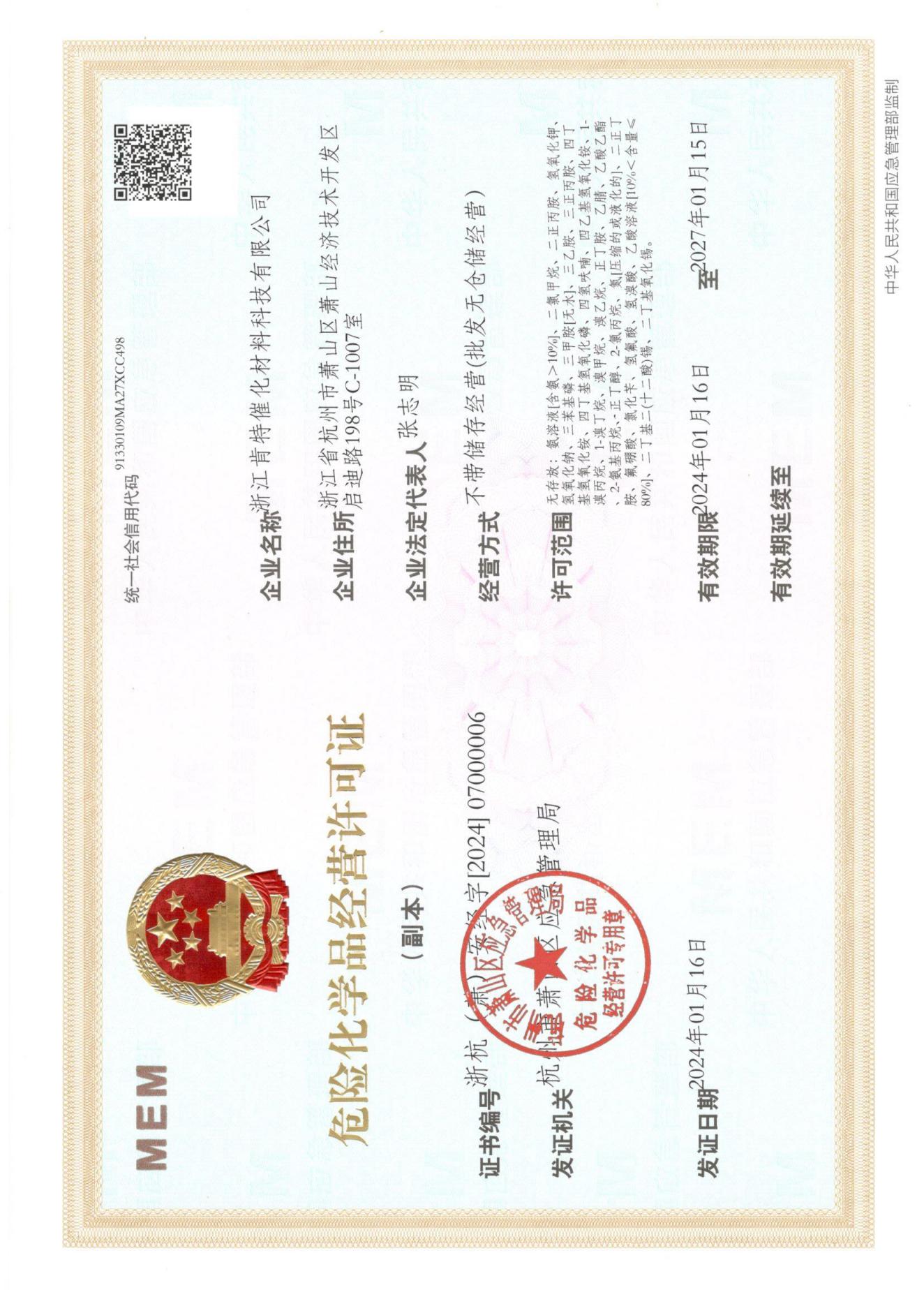 危险化学品经营许可证