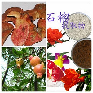 石榴皮提取物是以石榴 Punica granatum L. 的果皮为原料提取的产品,商品提取物通常标化为含鞣花酸40.0%。鞣花酸为有效的抗癌剂,可阻断人乳头状瘤病毒DNA复制, 抑制癌细胞染色体有丝分裂的G1期, 预防和控制P53抗癌基因免遭致畸, 修复头颈部癌细胞的P53基因活性, 对乳腺、胰腺、食道、皮肤、结肠、前列腺癌细胞具有同样功效;可增强人体免疫功能;有降压、镇静功效。用于医药及化妆品,作抗氧剂,具有防癌及抑制病毒作用。