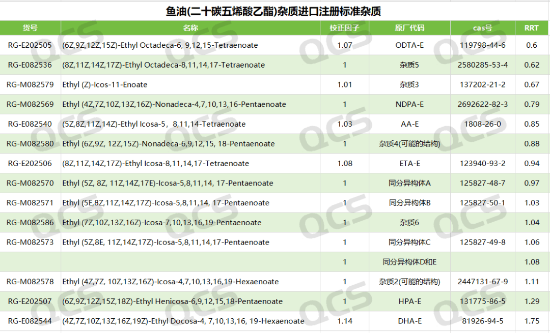 图3:二十碳五烯酸乙酯软胶囊注册标准中有关物质相关信息图