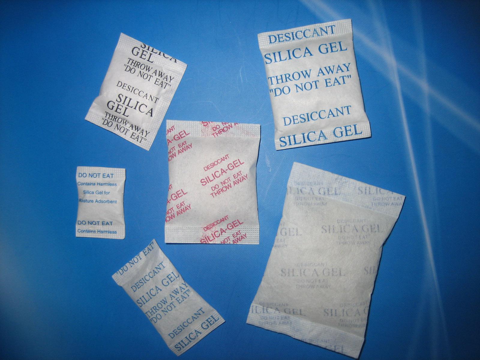 包装用硅胶有多种包装规格,可方便地置于各类物品(如仪器仪表、电子产品、皮革、鞋、服装、食品、药品和家用电器等)包装内,以防止物品受潮霉变或锈蚀。