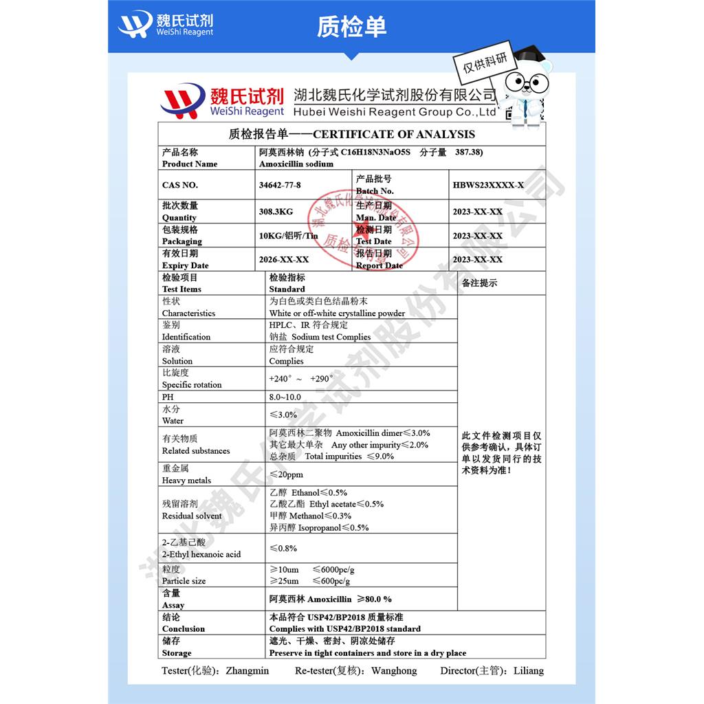 湖北魏氏化学试剂股份有限公司 分析试剂—现货供应商服务热线:魏经理18627096350,QQ客服2853877630现货库存+当天订单可以发顺丰快递+开票含运费+付款订单后提供质检单作用:用于外贸出口、科学研究和化学试剂等领域 储存:遮光干燥密封储存 有效期3年