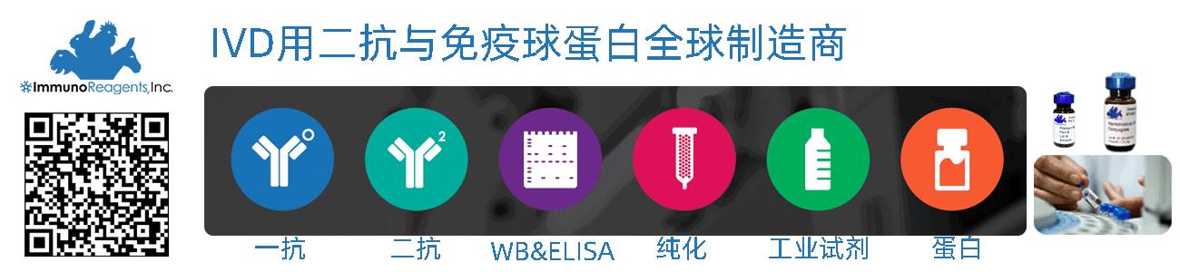 ImmunoReagents Inc.是科学研究和体外诊断用多克隆抗体的全球制造商。产品涵盖了各物种的免疫球蛋白二抗,通过交叉吸收提供高特异性。二抗产品涵盖了抗人,抗牛、抗猫、抗鸡、抗猴、抗山羊、抗豚鼠、抗仓鼠、抗骆驼、抗小鼠、抗兔、抗大鼠、抗羊的抗体。同时还提供抗激素,肿瘤标志物,心肌标志物及血清蛋白的多克隆抗体。除此以为,ImmunoReagents还提供定制的吸附和纯化以满足特定的要求,提供cGMP和ISO质量体系的批量生产。