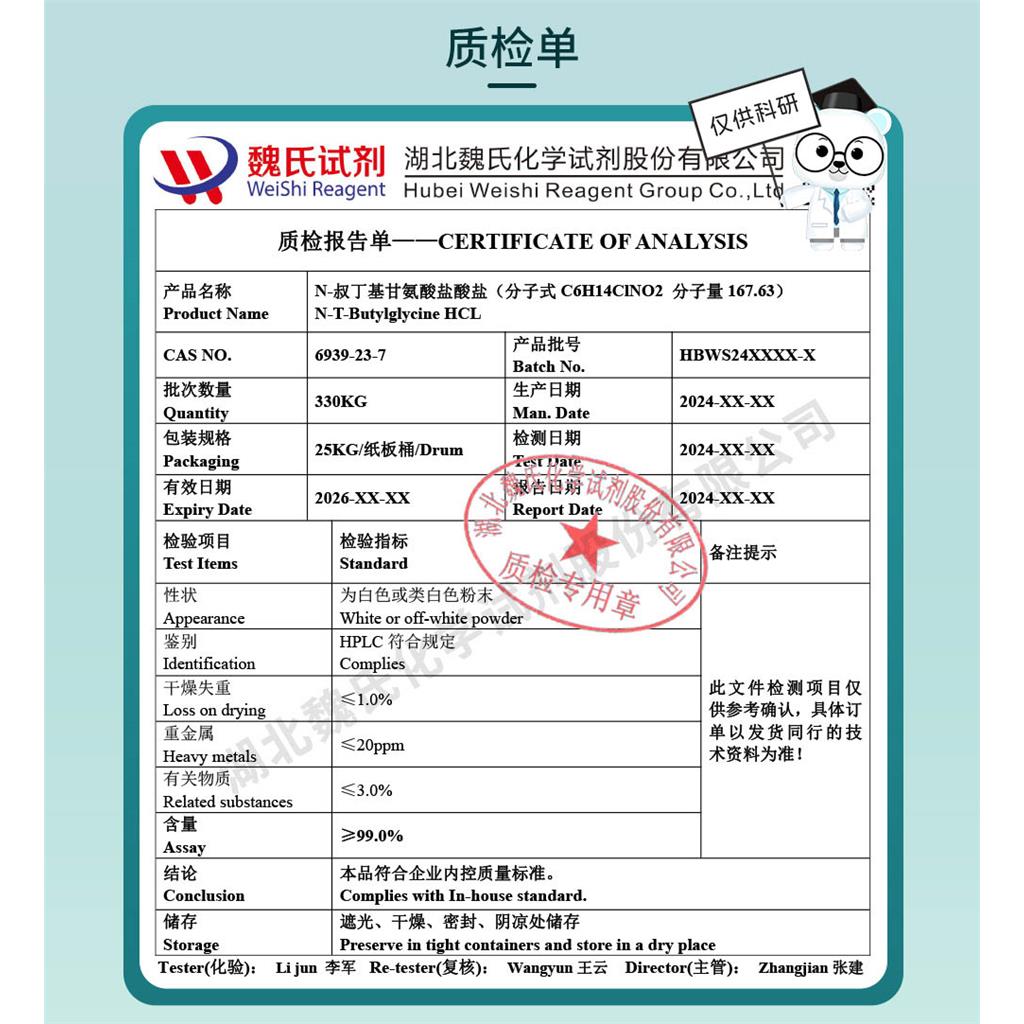 作用:用于外贸出口、科学研究和化学试剂等领域 储存:遮光干燥密封储存 有效期2年