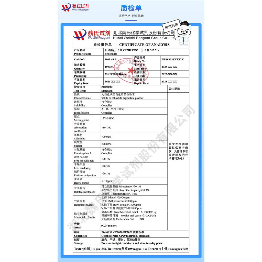 作用:用于外贸出口、科学研究和化学试剂等领域 储存:遮光干燥密封储存 有效期4年