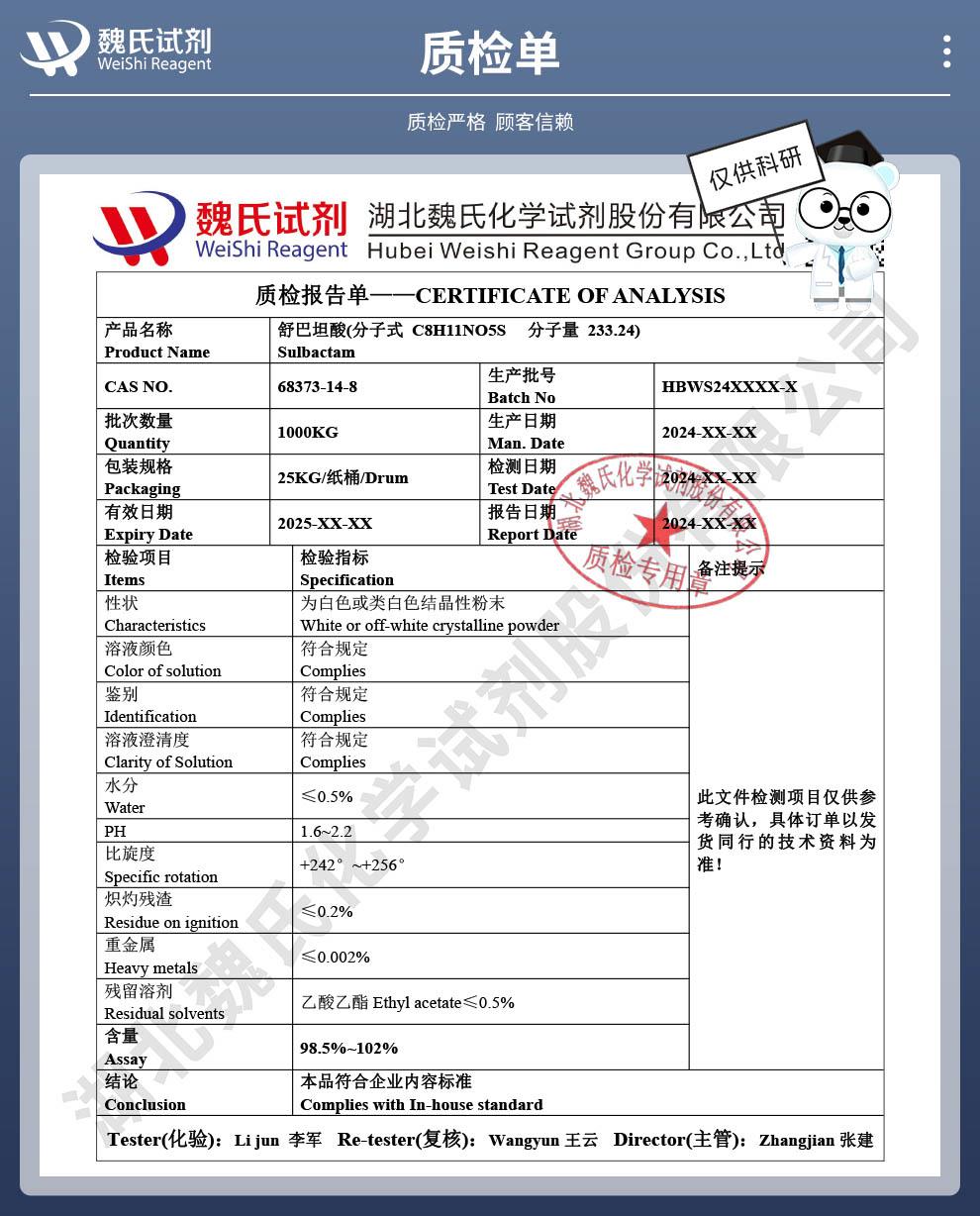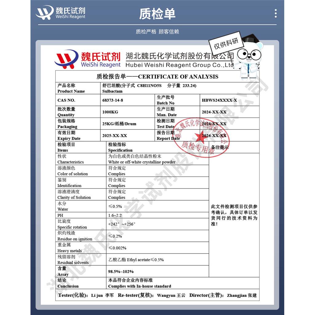 湖北魏氏化学试剂股份有限公司 分析试剂—现货供应商服务热线:刘经理 13125137732(微信同号)QQ客服2853863890
