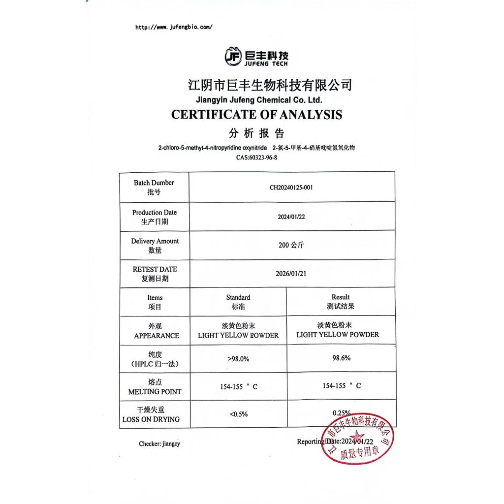 2-氯-5-甲基-4-硝基吡啶氧化物用于化学试剂、精细化学品、医药中间体、材料中间体