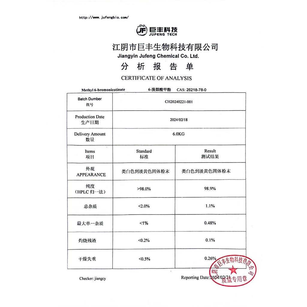 6-溴烟酸甲酯用于化学试剂、精细化学品、医药中间体、材料中间体