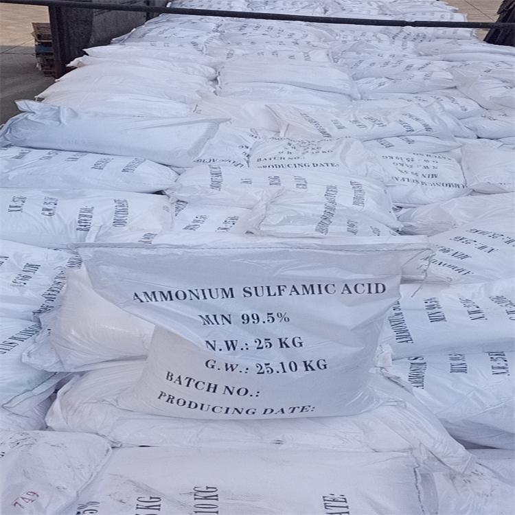 中文名称:氨基磺酸中文别名:磺酰胺酸;氨磺酸;磺酸胺;磺酸氨;胺磺酸;氨基磺酸SULFAMIC ACID;亚胺磺酸;氨基磺酸英文名称:Sulfamic acidCAS号:5329-14-6分子式:NH2SO3H分子量:97.09性状:无色或白色结晶,溶于水,微溶于乙醇和甲醇,微溶于丙酮,不溶于醚.在水溶液中逐渐分解成硫酸氢铵水中溶解度:146.8 g/l (20 ℃)熔点: 215-225℃主要用途:1.用于除草剂、防火剂、纸张和纺织品的软化剂、金属清洗剂等。2.用于防莠剂的制备、织物的防火及有机合成。3.在分析化学中可作为酸碱滴定的基准试剂。4.作漂白助剂。5.碱量滴定法标准;络合掩蔽剂;有机微量分析测定氮和硫的标准6氨基磺酸作为清洗剂,因为它是固体,具有贮存、运输方便,容易配制等很多优点,特别适用远途使用储存条件:库房通风低温干燥; 与碱、氧化剂分开存放