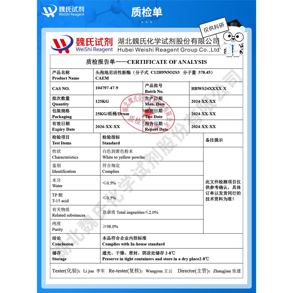 湖北魏氏化学试剂股份有限公司 分析试剂—现货供应商服务热线:张经理 18717199209(微信同号)QQ客服2853877583现货库存+当天订单可以发顺丰快递+开票含运费+付款订单后提供质检单 作用:用于外贸出口、科学研究和化学试剂等领域 储存:遮光干燥密封储存 有效期2年