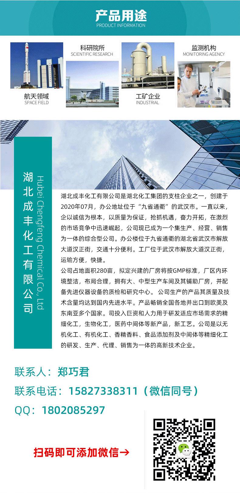 湖北成丰化工有限公司经营范围涉及精细化学品、医药中间体、化学溶剂、专用化学品、合成材料、化工助剂等多个领域。经过多年的发展,已形成化工溶剂、医药中间体和有机硅、油漆、印染、食品助剂和饲料添加剂等多种产品集研发、 经营、销售为一体的综合型集团公司。