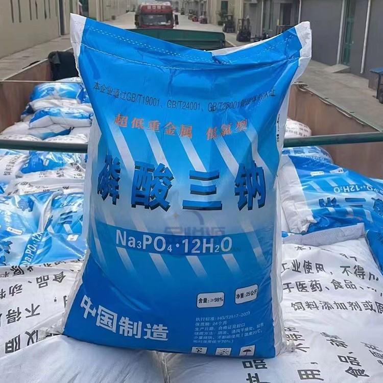 磷酸三钠,无色至白色针状结晶或结晶性粉末,溶于水,其水溶液呈强碱性;不溶于乙醇、二硫化碳。在干燥空气中易潮解风化,生成磷酸二氢钠和碳酸氢钠。在水中几乎完全分解为磷酸氢二钠和氢氧化钠.加热至55~65°C成十水物,加热至60~100°C成六水物,加热到100°C以上成为一水物,加热到212°C以上成为无水物。1%的水溶液pH值为11.5~12.1。