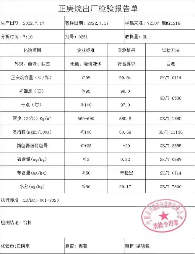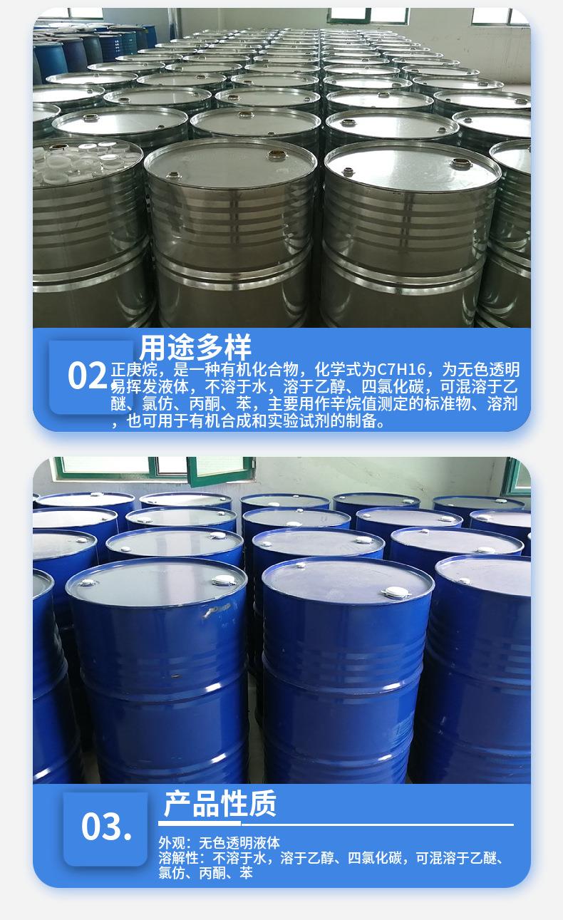 正庚烷,是一种有机化合物,化学式为C7H16,为无色透明易挥发液体,不溶于水,溶于乙醇、四氯化碳,可混溶于乙醚、氯仿、丙酮、苯,主要用作辛烷值测定的标准物、溶剂,也可用于有机合成和实验试剂的制备。