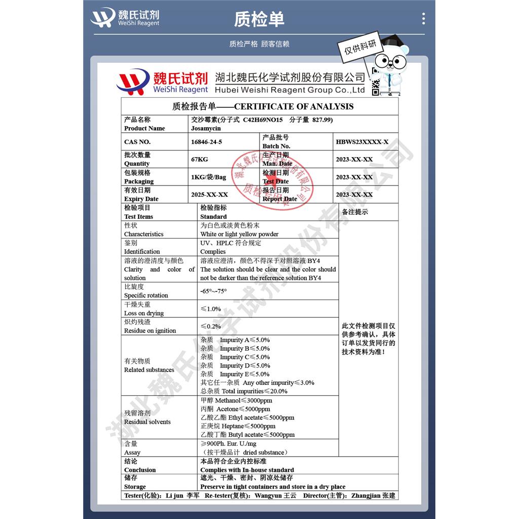 作用:用于外贸出口、科学研究和化学试剂等领域 储存:遮光干燥密封储存