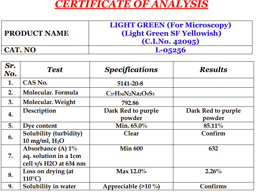 水中溶解度:200 g/l (20°C),溶于醇用作细胞学上的复染色,或Gomori's步骤中用作苯胺兰的替代物。