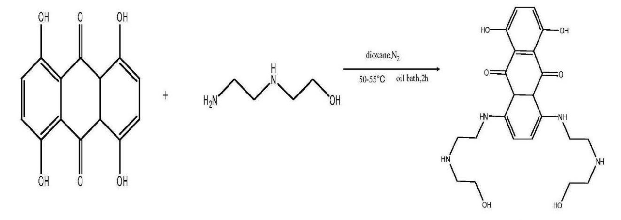 作为有机合成中间体,是抗癌药米托蒽醌(Mitoxantrone)的侧链。 [14]在合成1,4,5,8-四羟基蒽醌后,滴加羟乙基乙二胺并不断搅拌就可以合成米托蒽醌的粗产品,产品为糊状黏稠液体。 [27]