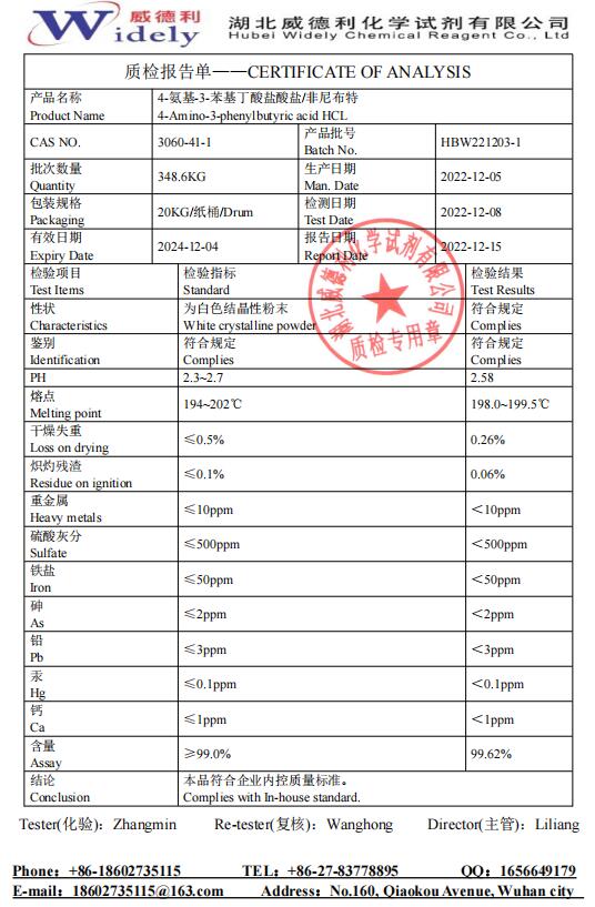关注湖北威德利化学4-氨基-3-苯基丁酸盐酸盐科研试剂