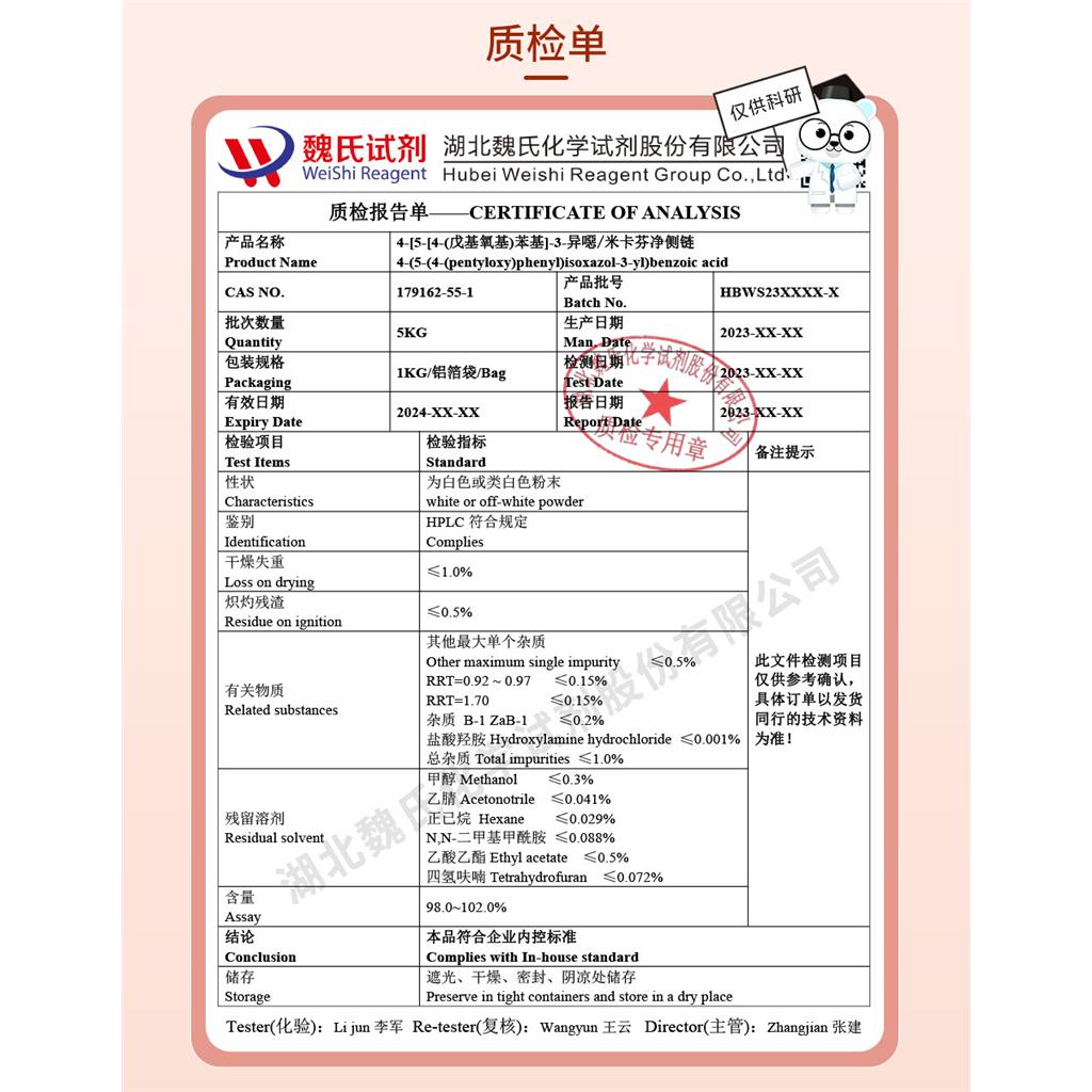 湖北魏氏化学试剂股份有限公司 分析试剂—现货供应商服务热线:张经理 18717199209(微信同号)QQ客服2853877583现货库存+当天订单可以发顺丰快递+开票含运费+付款订单后提供质检单 作用:用于外贸出口、科学研究和化学试剂等领域 储存:遮光干燥密封储存 有效期2年