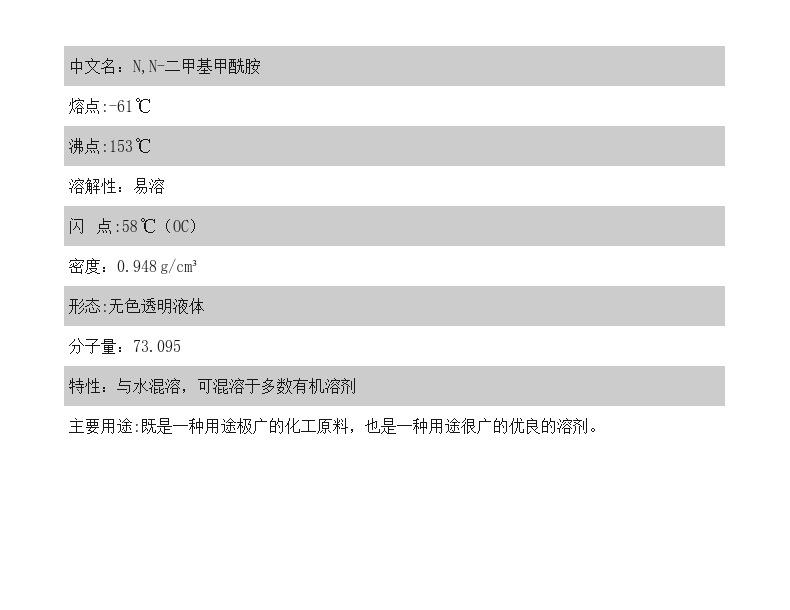 N,N-二甲基甲酰胺厂家;N,N-二甲基甲酰胺供应商;甲酰二甲胺厂家;甲酰二甲胺;68-12-2;