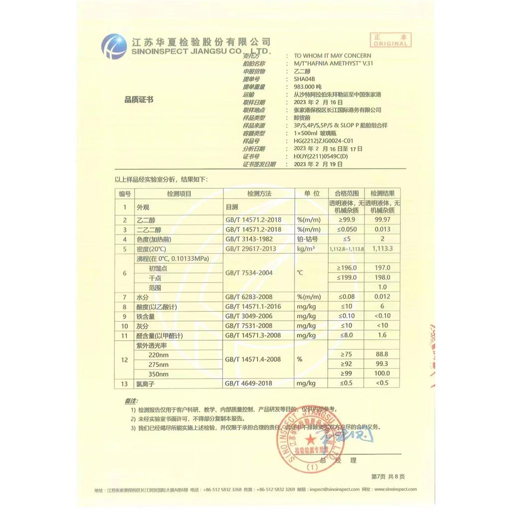 沙特进口乙二醇230公斤/桶涤纶级99.9