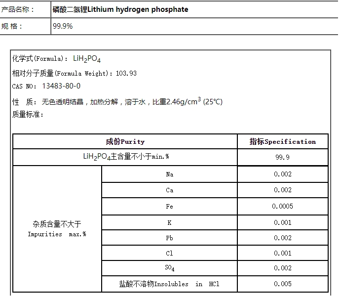 -磷酸二氢锂也可用于制备多种无机盐、金属氧化物和配位聚合物。