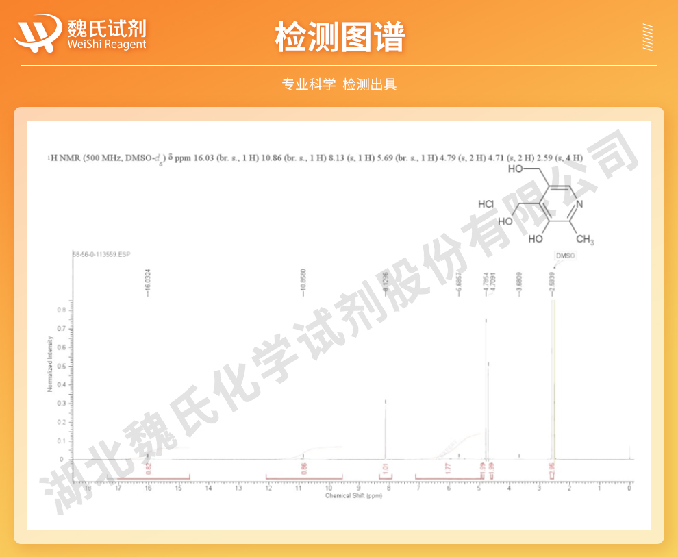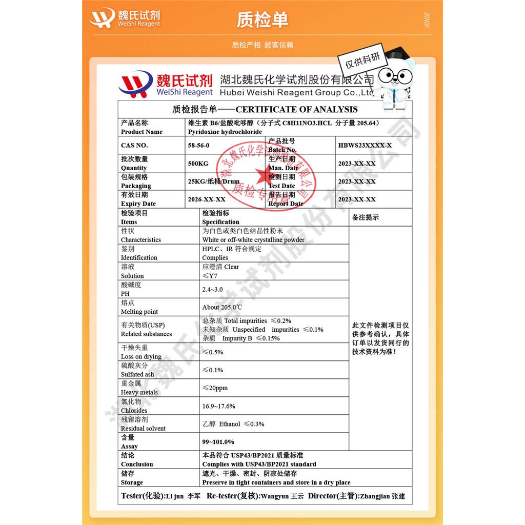 关键字: 58-56-0;维生素B6盐酸吡哆醇—医药级;魏氏试剂;