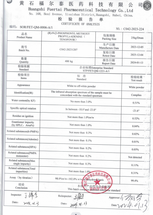 黄石福尔泰位于湖北黄石西塞山区,创立于2007年,占地52000平方米。公司致力于研发、生产和销售核苷类抗病毒药物富马酸替诺福韦酯中间体,是全球唯一一家生产替诺福韦中间体全系列产品的厂家。目前,公司正依靠GMP管理和不断创新,逐步向药品生产企业转型升级。