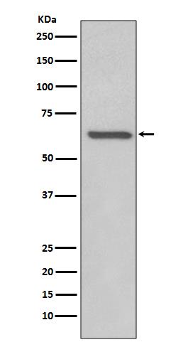 Western blot analysis of RelB in Raji lysates using Rel B antibody.