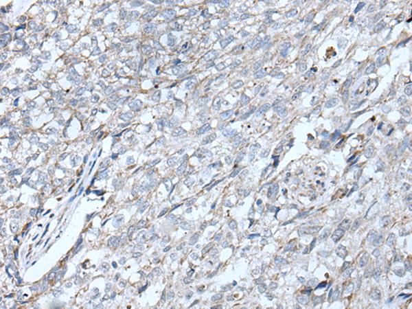 The image is immunohistochemistry of paraffin-embedded Human lung cancer tissue using (VRK2 Antibody) at dilution 1/50. (Original magnification: ×200)