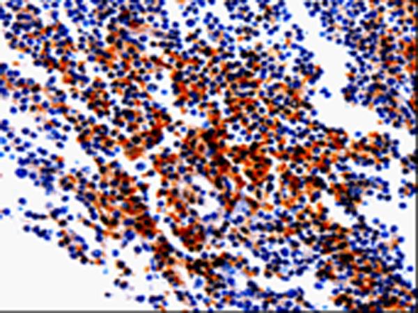 The image is immunohistochemistry of paraffin-embedded Human tonsil tissue using (GDI1 Antibody) at dilution 1/20. (Original magnification: ×200)