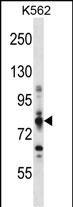 CPT1A Antibody (C-term) western blot analysis in K562 cell line lysates (35ug/lane).This demonstrates the CPT1A antibody detected the CPT1A protein (arrow).