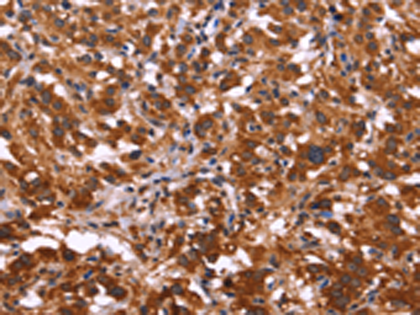 The image is immunohistochemistry of paraffin-embedded Human thyroid cancer tissue using (ARL4A Antibody) at dilution 1/50. (Original magnification: ×200)