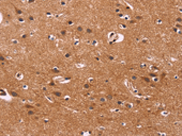 The image is immunohistochemistry of paraffin-embedded Human brain tissue using (ARL4A Antibody) at dilution 1/50. (Original magnification: ×200)