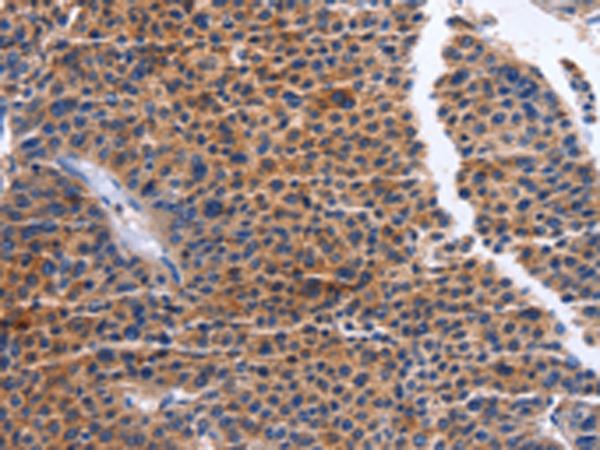 The image is immunohistochemistry of paraffin-embedded Human liver cancer tissue using (MAP3K13 Antibody) at dilution 1/20. (Original magnification: ×200)