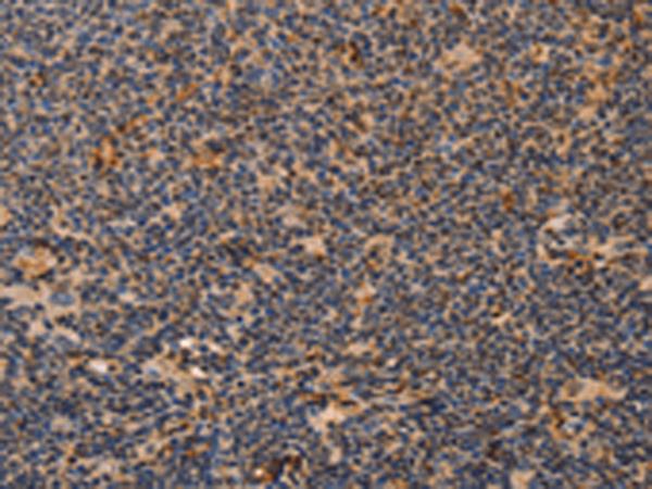 The image is immunohistochemistry of paraffin-embedded Human Lymphoma tissue using (MPG Antibody) at dilution 1/40. (Original magnification: ×200)
