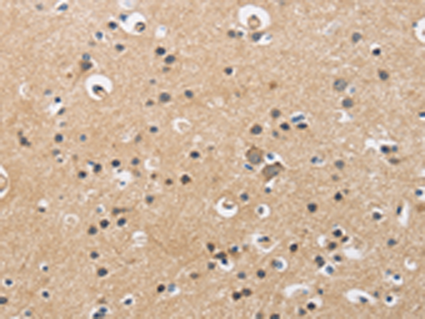 The image is immunohistochemistry of paraffin-embedded Human brain tissue using (CKMT2 Antibody) at dilution 1/60. (Original magnification: ×200)