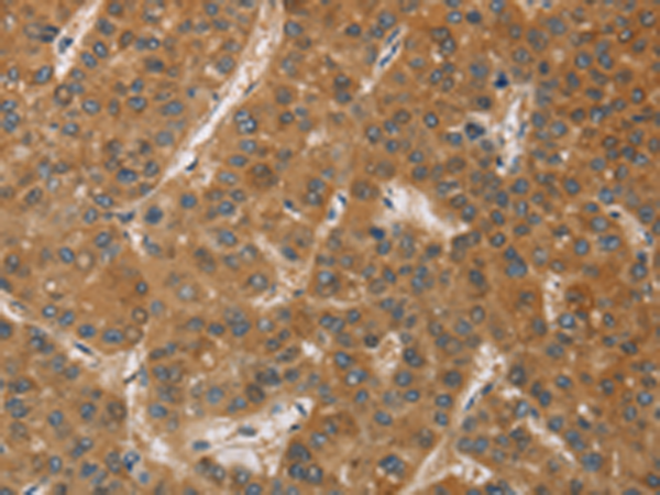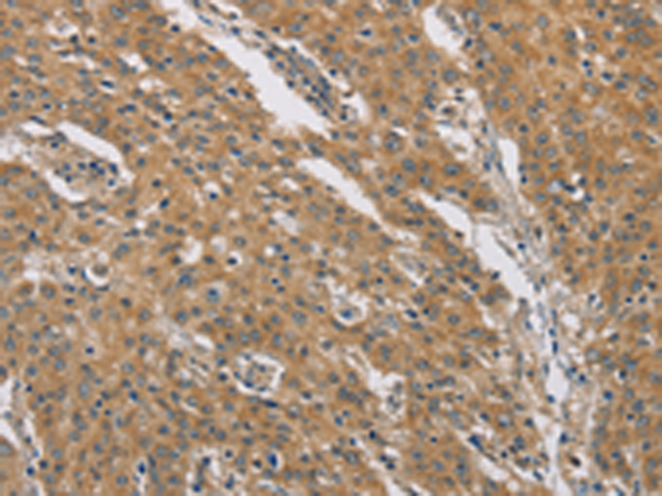 The image is immunohistochemistry of paraffin-embedded Human liver cancer tissue using (DCTN1 Antibody) at dilution 1/60. (Original magnification: ×200)