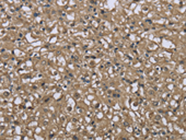 The image is immunohistochemistry of paraffin-embedded Human prostate cancer tissue using (FBP1 Antibody) at dilution 1/40. (Original magnification: ×200)
