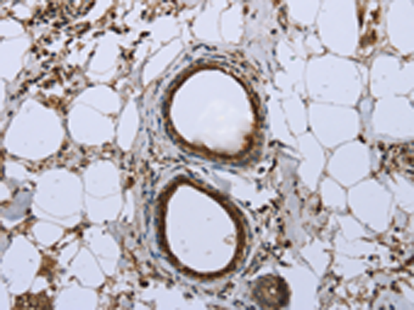The image is immunohistochemistry of paraffin-embedded Human breast cancer tissue using (FBP1 Antibody) at dilution 1/40. (Original magnification: ×200)