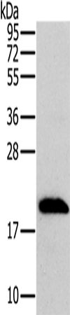 Gel: 10%SDS-PAGE, Lysate: 40 μg, Lane: 293T cells, Primary antibody: (MRPL12 Antibody) at dilution 1/300, Secondary antibody: Goat anti rabbit IgG at 1/8000 dilution, Exposure time: 5 seconds