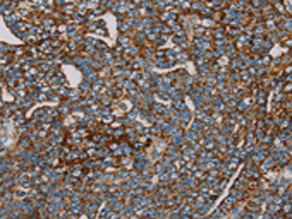 The image is immunohistochemistry of paraffin-embedded Human cervical cancer tissue using (MRPL12 Antibody) at dilution 1/25. (Original magnification: ×200)